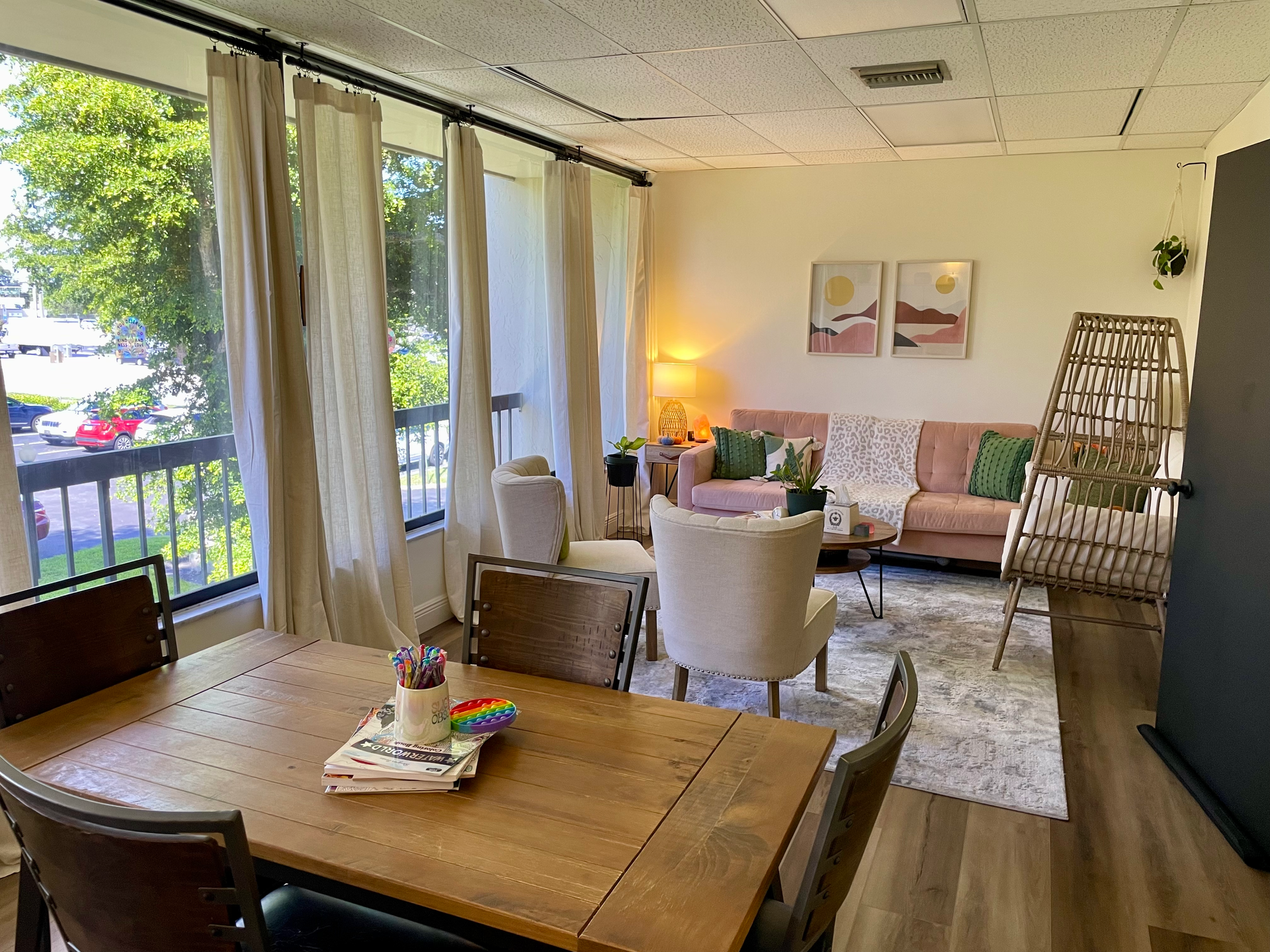 Our West Palm Beach office is located just west of I-95 and on the south side of Forest Hill Blvd. We are located on the corner of Forest Hill Blvd and Florida Mango Rd. There is free parking in the spacious parking lot located in the front and back of the building. Stairs can be found on the internally in the east and west side of the building, with the elevator located inside the main entry. Have a seat in the waiting room and enjoy the calm. Your therapist will be right with you.
